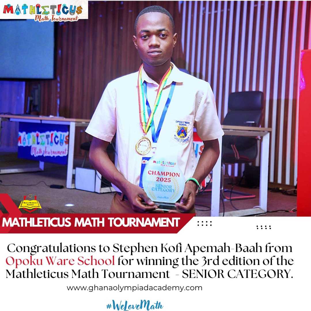 Stephen Kofi Apemah-Baah, a name synonymous with academic brilliance, has enhanced his profile after he won Season 3 of the Mathleticus Math Tournament.